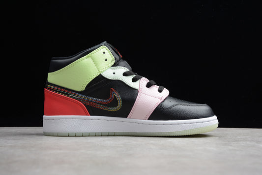 Air Jordan 1 Mid "Multicolor Swoosh" Black