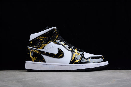 Air Jordan 1 Mid 'Patent Black White Gold'