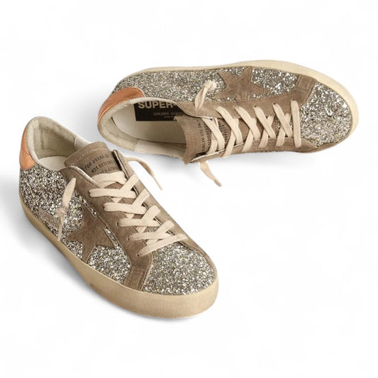 Super-Star sneakers in platinum glitter with a dove-gray suede star