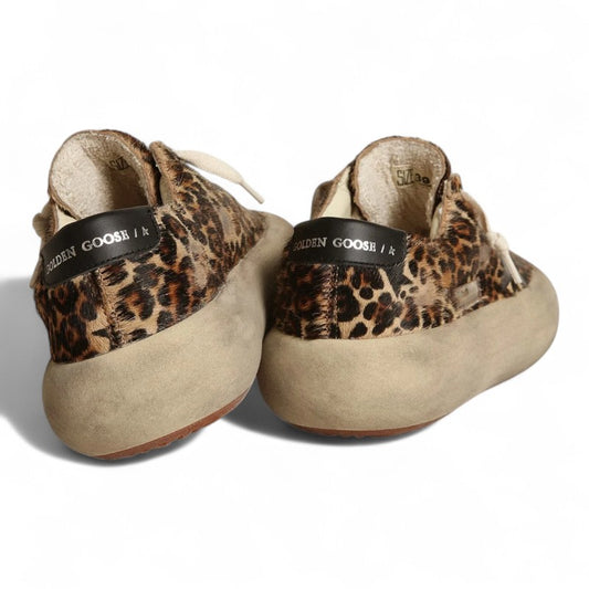 Space-Star shoes in leopard-print pony skin with black leather star and heel tab